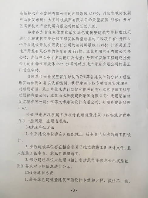 关于丹阳市2016年绿色建筑暨建筑节能专项检查情况的通报