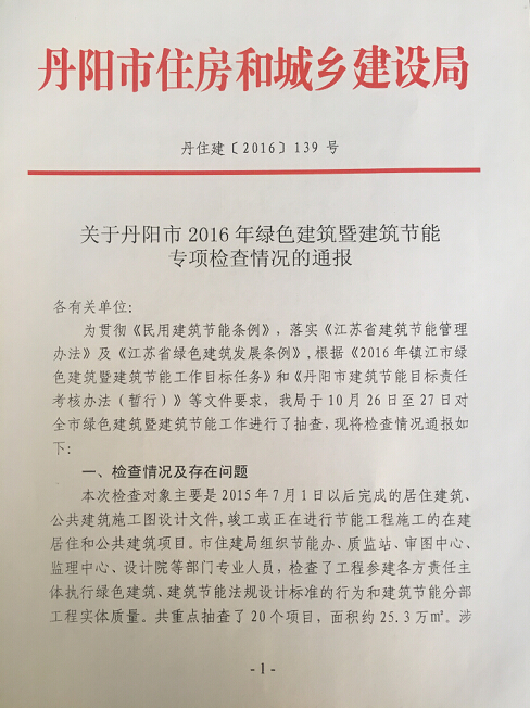 关于丹阳市2016年绿色建筑暨建筑节能专项检查情况的通报